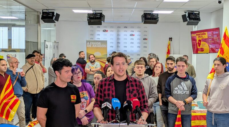 Chuaquín Bernal, presidente de CHA-Zaragoza: “No podemos permitir que familias trabajadoras, estudiantes o mayores queden fuera por un pelotazo inmobiliario que concentra riqueza en pocas manos y estrangula la vida diaria de la gente”. Jorge Pueyo, diputado de CHA en las Cortes de Aragón: “Aragón es un pueblo de paz. Lo que hace veinte años valía para oponerse al trío de las Azores y la barbarie que hicieron en Irak, vale hoy para oponerse al trumpismo y el sionismo. Desde el aragonesismo siempre diremos: No a la Guerra”.