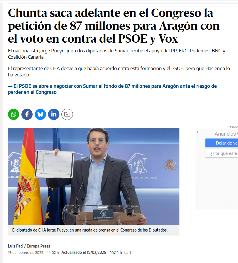 Aquí tenéis el dosier de prensa de estos días en relación con el debate y aprobación de nuestra proposición no de ley para crear un fondo especifico para Aragón de 87 millones por la merma de ingresos por la pérdida de peso en la población ajustada:
