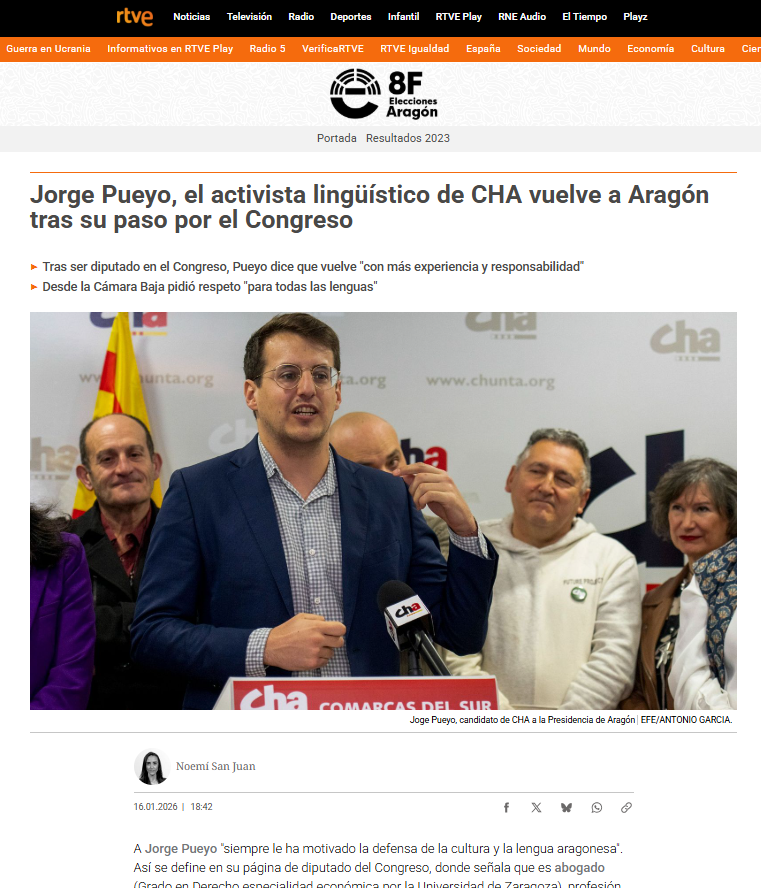 En la web de RTVE Noemí San Juan me ha hecho esta reseña como candidato a la presidencia de Aragón:
