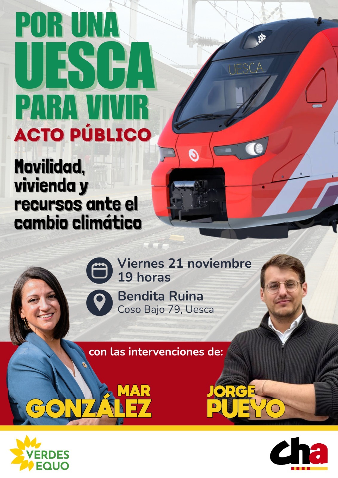 “Por una Uesca para vivir”: el viernes 21, un acto de CHA y del Partido Verde